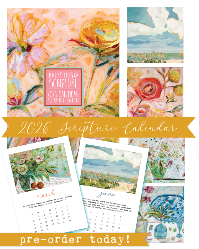 Start 2026 with a Scriptural foundation to each day. This beautifully illustrated 5×7 Scripture calendar features original paintings by ThouArtExalted Ministries founder, Annie Pajcic.