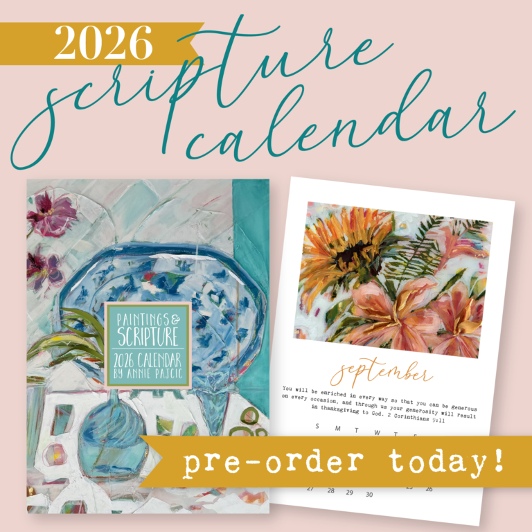 Start 2025 with a Scriptural foundation to each day. This beautifully illustrated 5×7 Scripture calendar features original paintings by ThouArtExalted Ministries founder, Annie Pajcic.